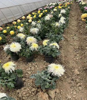 菊花培育管理人員在開(kāi)始培育工作之前,精心整理地基,施足基肥;挑選無(wú)病蟲(chóng)害、腳芽飽滿的植株;根據(jù)不同品種的特點(diǎn),將它們分區(qū)域、分品種成規(guī)則型栽種。為了方便識(shí)別和管理,會(huì)在每個(gè)品種旁邊插上標(biāo)識(shí)牌,明年四月份進(jìn)行扦插時(shí),也能輕松區(qū)分開(kāi)不同的品種。