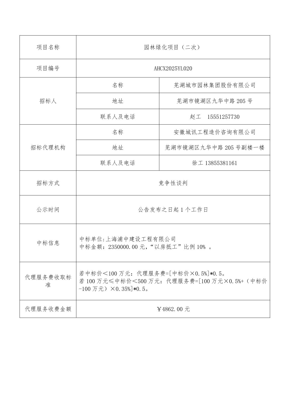 園林綠化項(xiàng)目(二次)成交結(jié)果公告