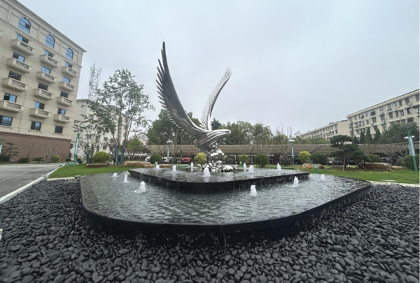 如今,園區(qū)內(nèi)景觀風(fēng)格煥然一新,水聲潺潺,綠樹成蔭,環(huán)境宜人。門口展翅的雄鷹雕塑與流水景觀、綠化植物相得益彰,共同構(gòu)成了一幅美麗的生態(tài)畫卷。該項(xiàng)目順利完工,不僅成為蕪湖城市更新的生動(dòng)縮影,更以生態(tài)之美、人文之韻,為城市高質(zhì)量發(fā)展注入了新的活力與內(nèi)涵。