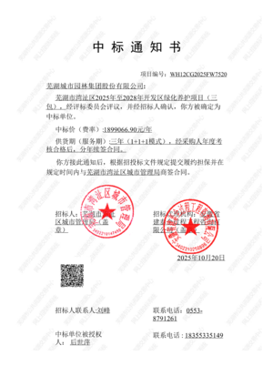 秋意漸濃,冬的序章悄然開啟。10月20日,園林集團迎來喜訊,成功中標蕪湖市灣沚區(qū)2025年至2028年開發(fā)區(qū)綠化養(yǎng)護項目(三包)。該項目中標價為190萬元/年,三年合同總金額570萬元;項目綠化面積約50.89萬平方米,其中行道樹約1739株。