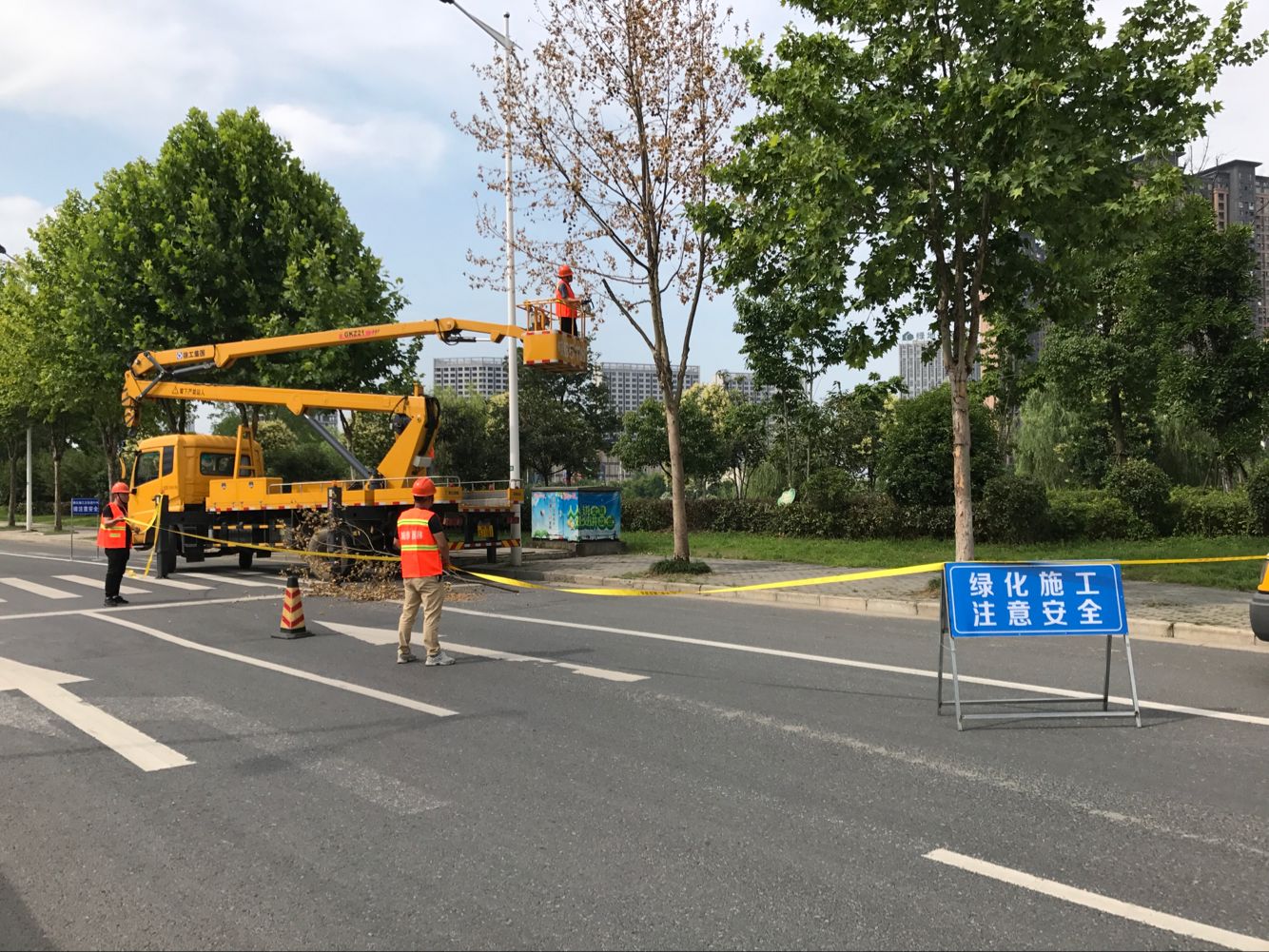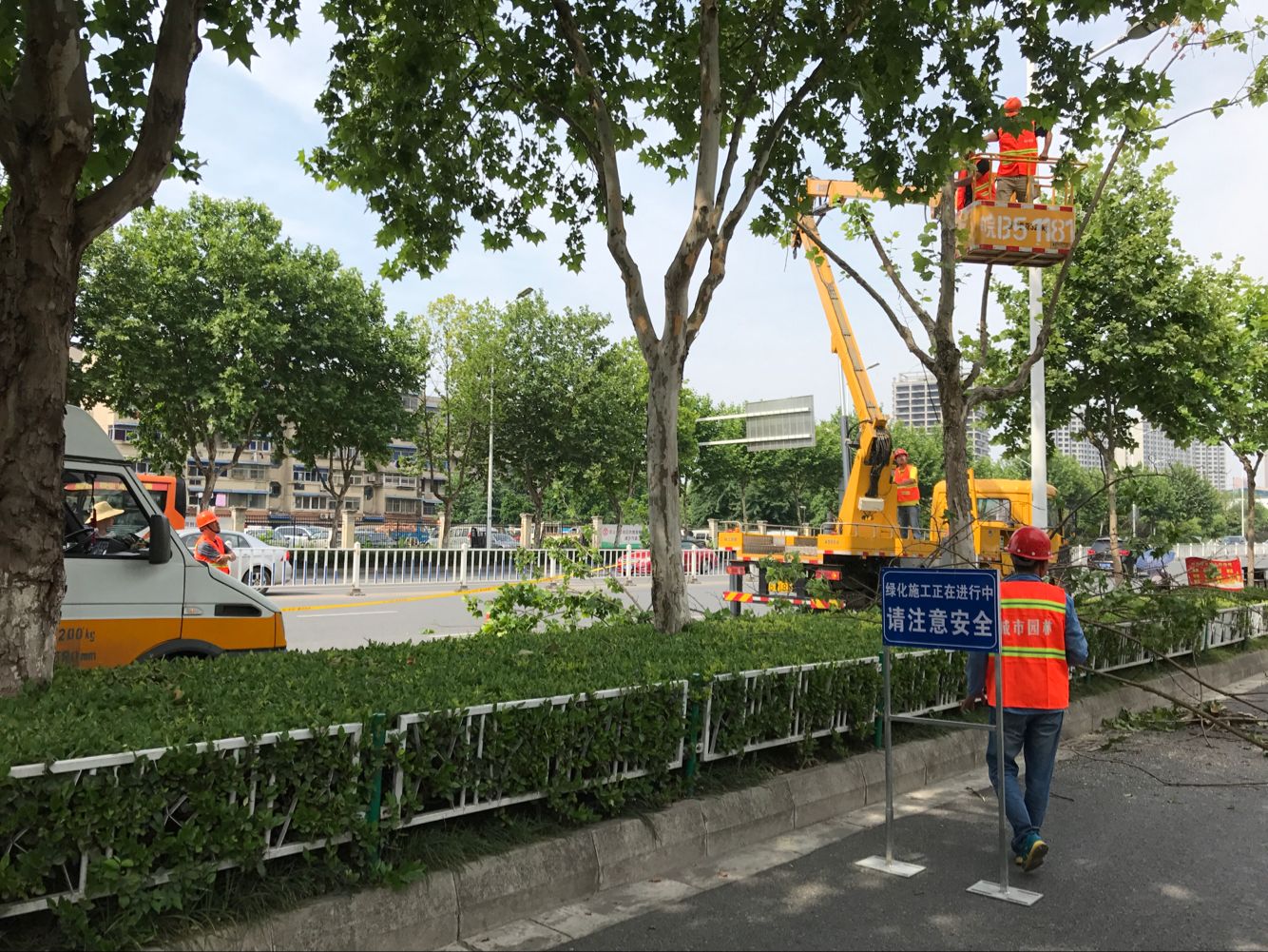 6月8號(hào)下午,我公司搶險(xiǎn)小組一行人在公司領(lǐng)導(dǎo)的帶領(lǐng)下,來到黃山路與弋江路的管轄路段,對于道路兩側(cè)的行道樹進(jìn)行排查。針對存在安全隱患的行道樹,我公司搶險(xiǎn)小組的成員按照既定的安全應(yīng)急預(yù)案,身著反光背心,佩戴安全帽,在作業(yè)現(xiàn)場周圍設(shè)置安全警示標(biāo)識(shí);并利用高架車、油鋸等車輛和工具各司其職,清除行道樹上的枯枝、死枝、懸枝,消除安全隱患。