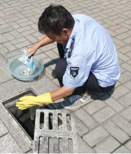 公園專人每天兩次對下水管道入口進行防蚊蟲藥物噴灑