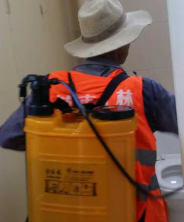 保潔人員每天兩次對公共區(qū)域進行防蚊蟲藥物噴灑