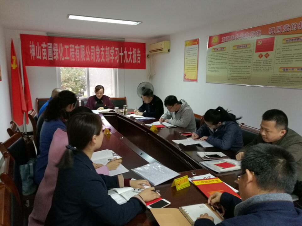11月16日下午,城市園林集團公司黨委委員曹慧同志深入蕪湖市神山苗圃綠化工程有限公司,帶領(lǐng)神山苗圃黨支部全體黨員集中學(xué)習(xí)了習(xí)近平總書記十九大報告精神。