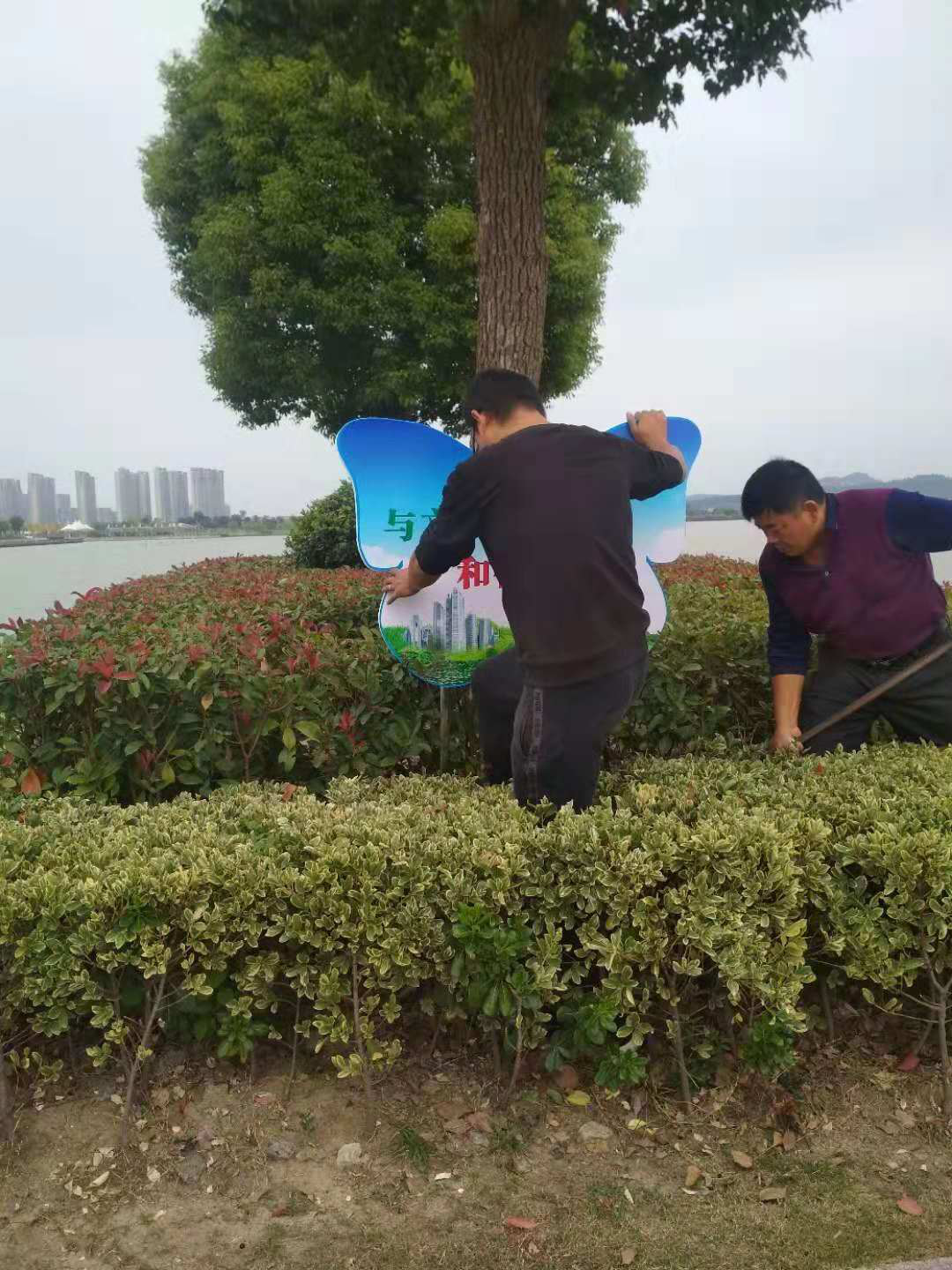 蕪湖城市園林集團有限公司三山分公司十月份文明創(chuàng)建期間, 三山分公司全體員工配合三山區(qū)住建委在蓮花湖公園內(nèi)清理舊的文明標語牌,安裝新的文明標語牌,迎接文明檢查團。
