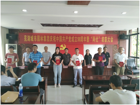 6月28日,在紀(jì)念建黨98周年之際,為表彰先進(jìn)、弘揚(yáng)正氣、樹立標(biāo)桿、激發(fā)干勁,蕪湖城市園林集團(tuán)有限公司召開慶祝中國共產(chǎn)黨成立98周年暨“兩優(yōu)”表彰大會(huì),對(duì)汪洋、施雯等19名優(yōu)秀共產(chǎn)黨員和優(yōu)秀黨務(wù)工作者予以表彰。