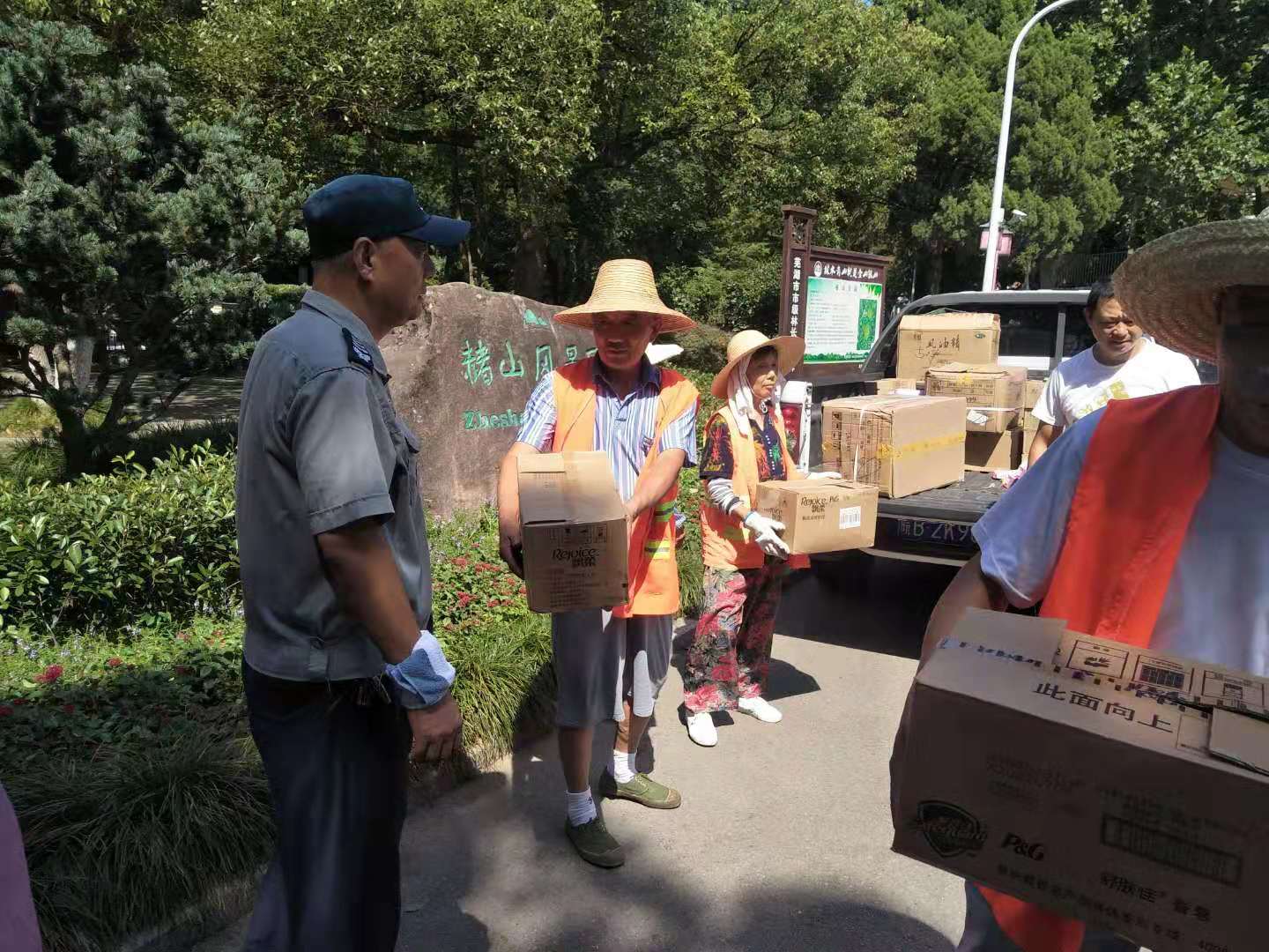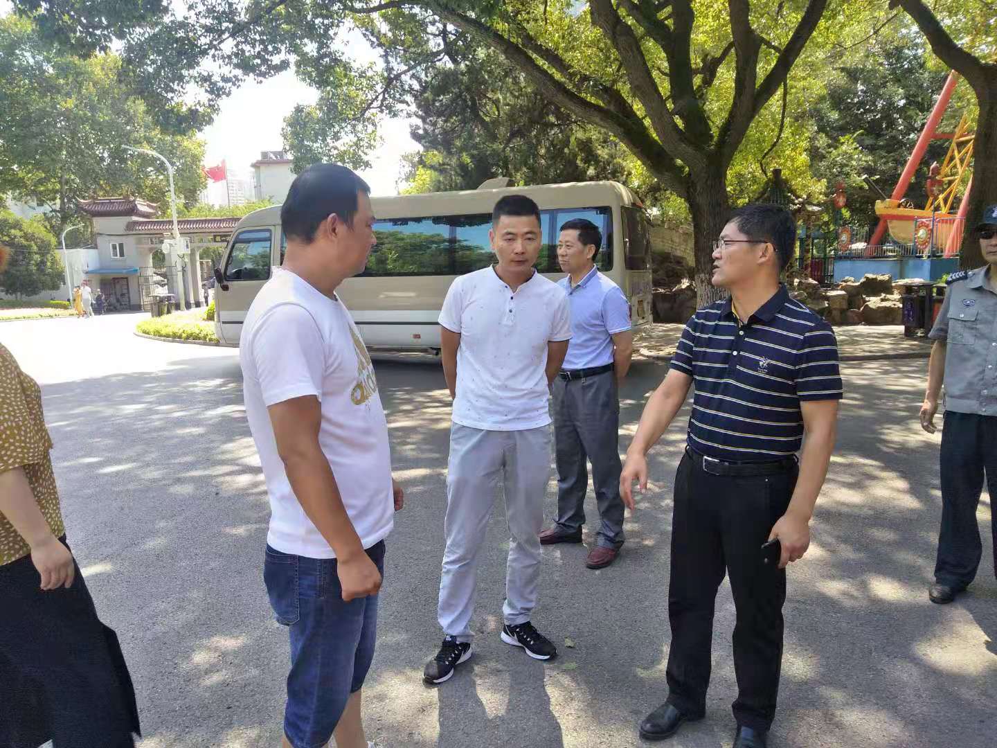 進(jìn)入7月以來,氣溫節(jié)節(jié)攀升。烈日炎炎,熱浪滾滾,持續(xù)的高溫天氣考驗(yàn)著各行各業(yè)的正常生產(chǎn)運(yùn)作。古建公司一線職工為及時(shí)做好抗旱保綠工作,確保我市道路兩旁綠化帶樹木、片林平安度過高溫期、抗旱期,依舊堅(jiān)守崗位。7月30日上午,園林集團(tuán)黨委書記、董事長童朝陽,黨委副書記程怡,副總經(jīng)理曹慧,紀(jì)檢書記江守清,行政部部長李承榮等成員看望、慰問奮戰(zhàn)在高溫一線的廣大職工,為他們送去了夏季防暑物品,為職工們帶來了絲絲“清涼”。