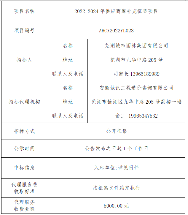 2022-2024年供應(yīng)商庫補充征集項目中標(biāo)公告