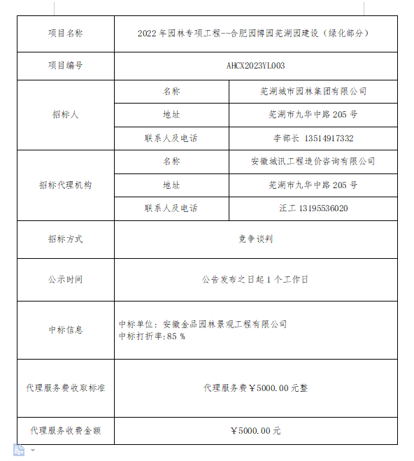 2022年園林專項工程--合肥園博園蕪湖園建設(shè)(綠化部分)中標結(jié)果公示