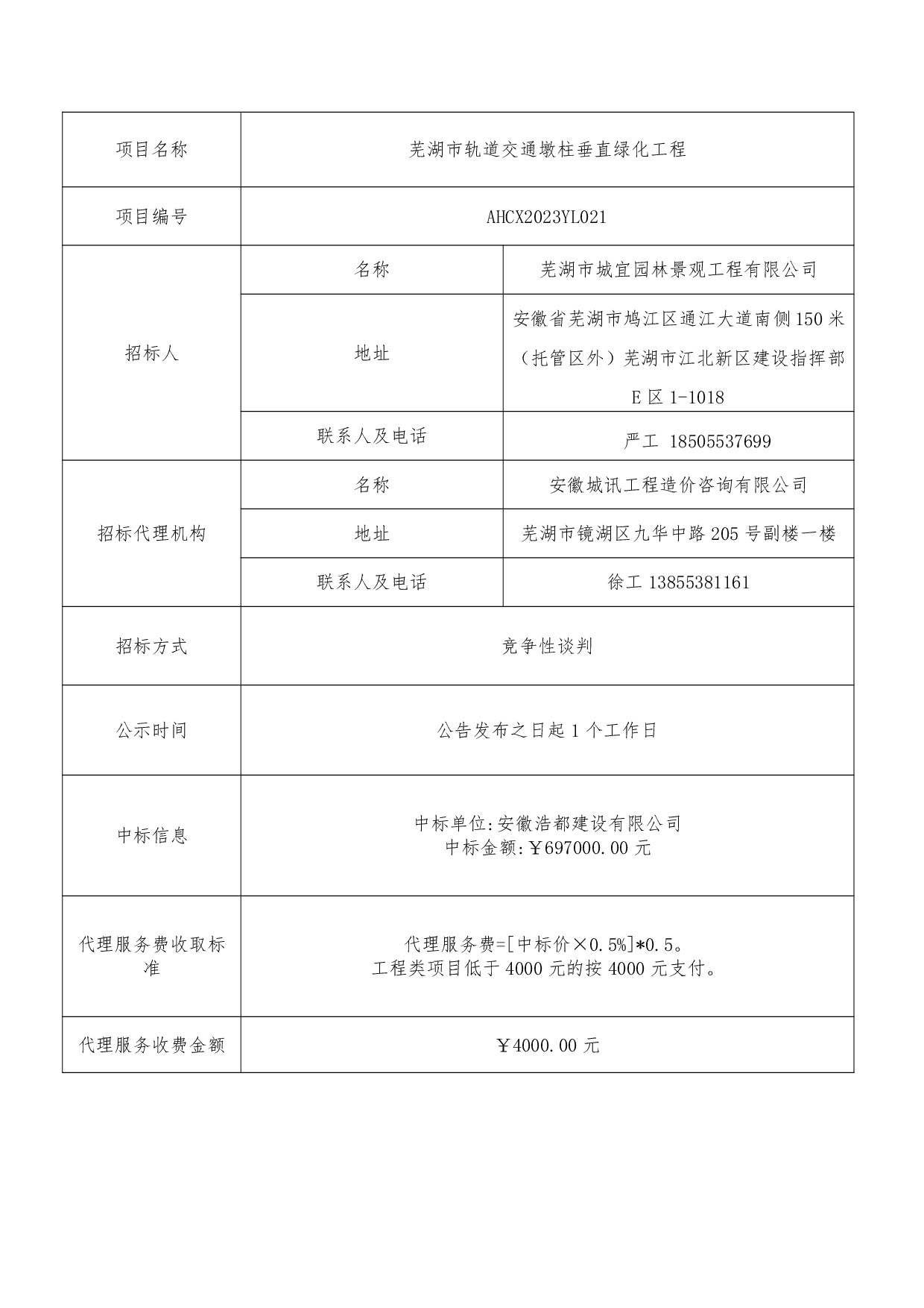 蕪湖市軌道交通墩柱垂直綠化工程中標(biāo)結(jié)果公示