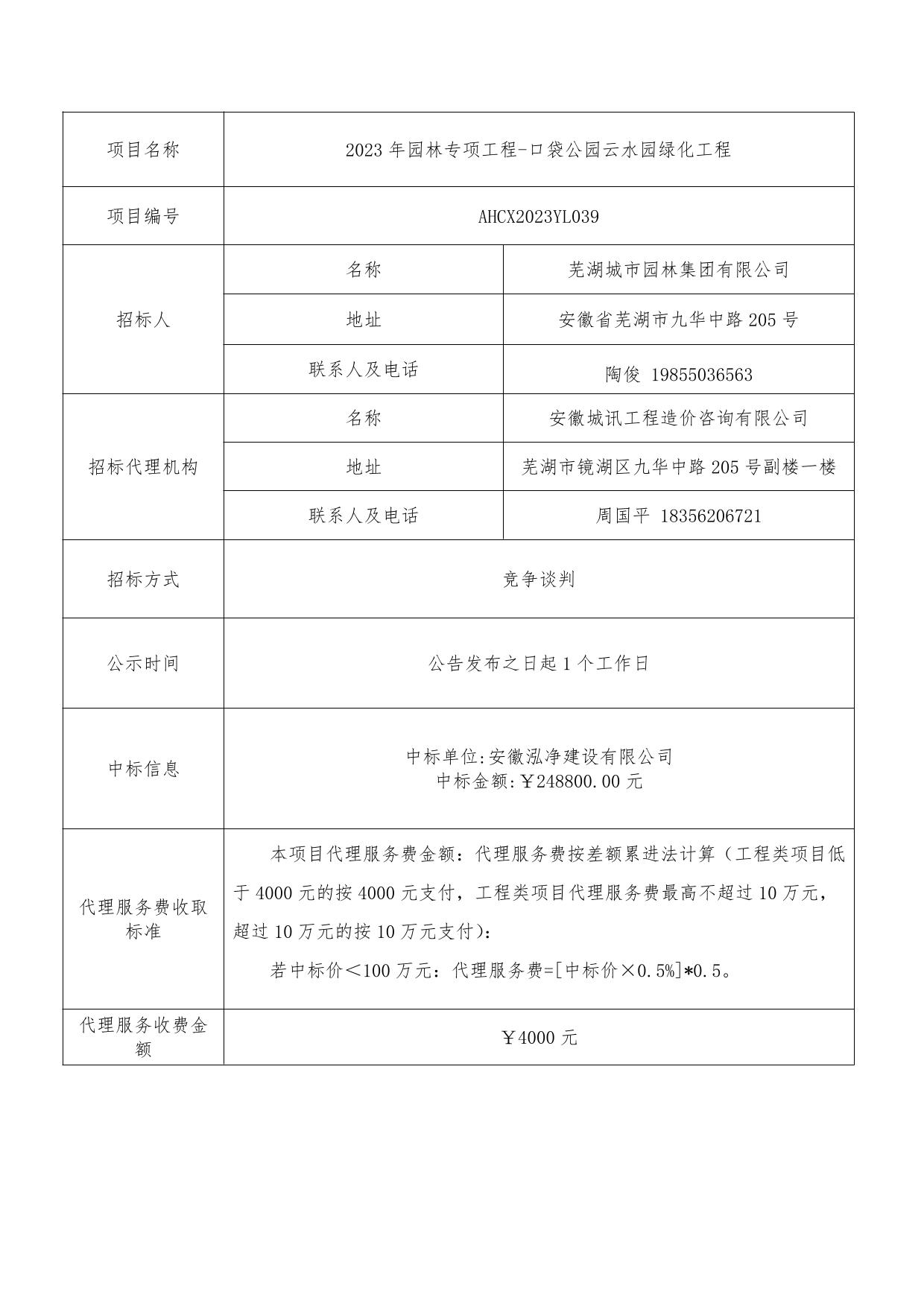 2023年園林專項(xiàng)工程-口袋公園云水園綠化工程中標(biāo)結(jié)果公示