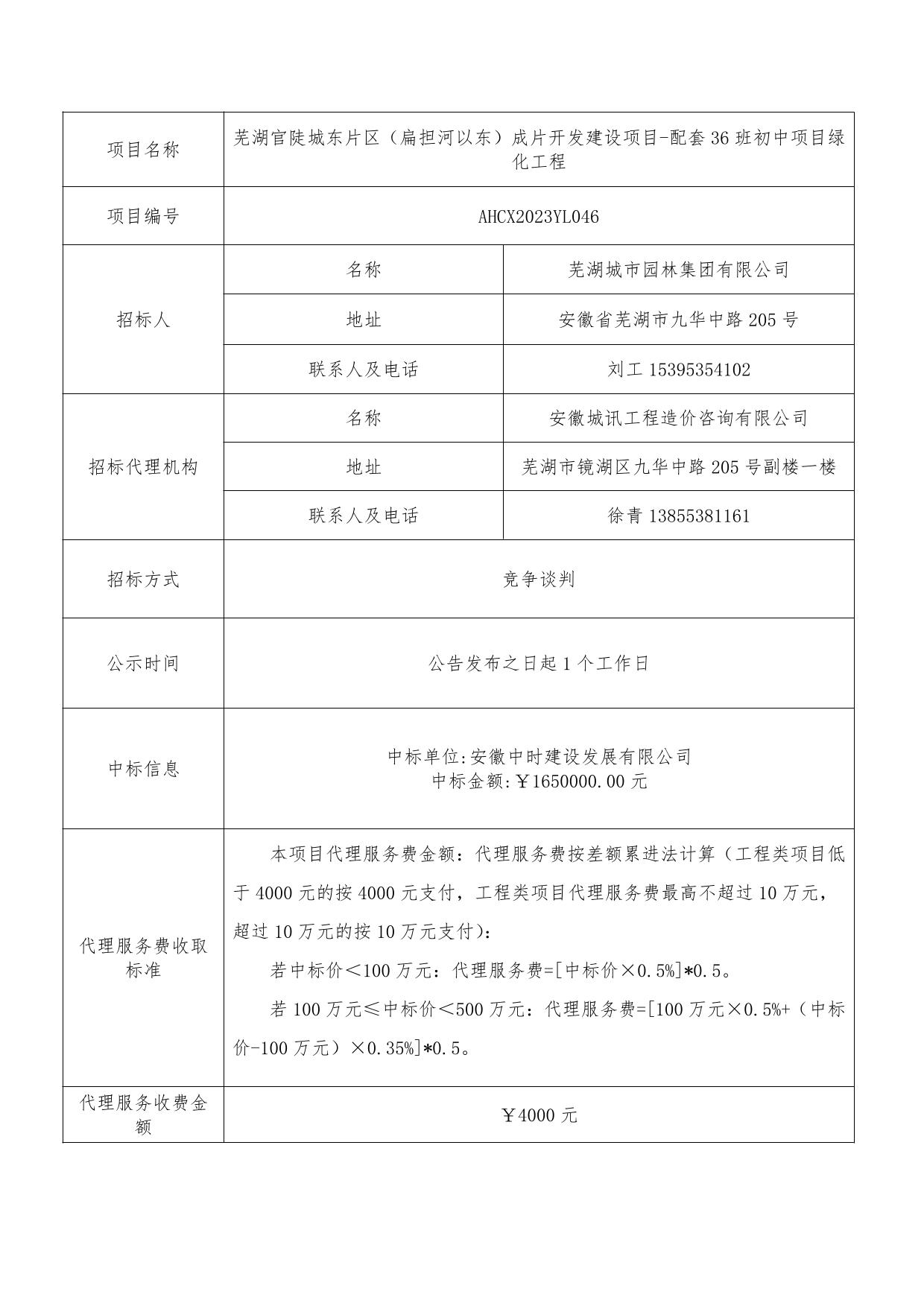 蕪湖官陡城東片區(qū)(扁擔(dān)河以東)成片開(kāi)發(fā)建設(shè)項(xiàng)目-配套36班初中項(xiàng)目綠化工...