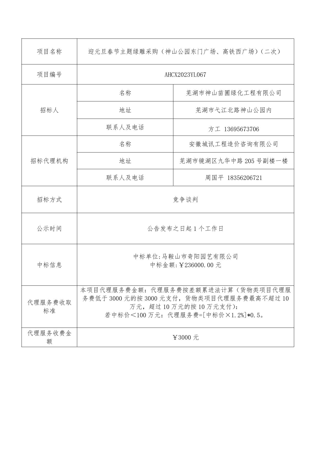 迎元旦春節(jié)主題綠雕采購(神山公園東門廣場(chǎng)、高鐵西廣場(chǎng))(二次)成交結(jié)果公...