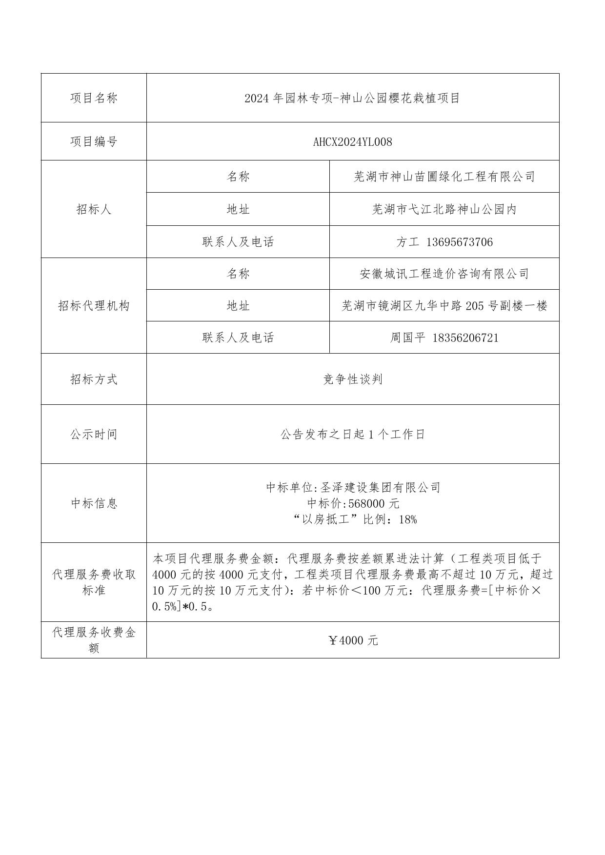 2024年園林專項(xiàng)-神山公園櫻花栽植項(xiàng)目成交結(jié)果公告