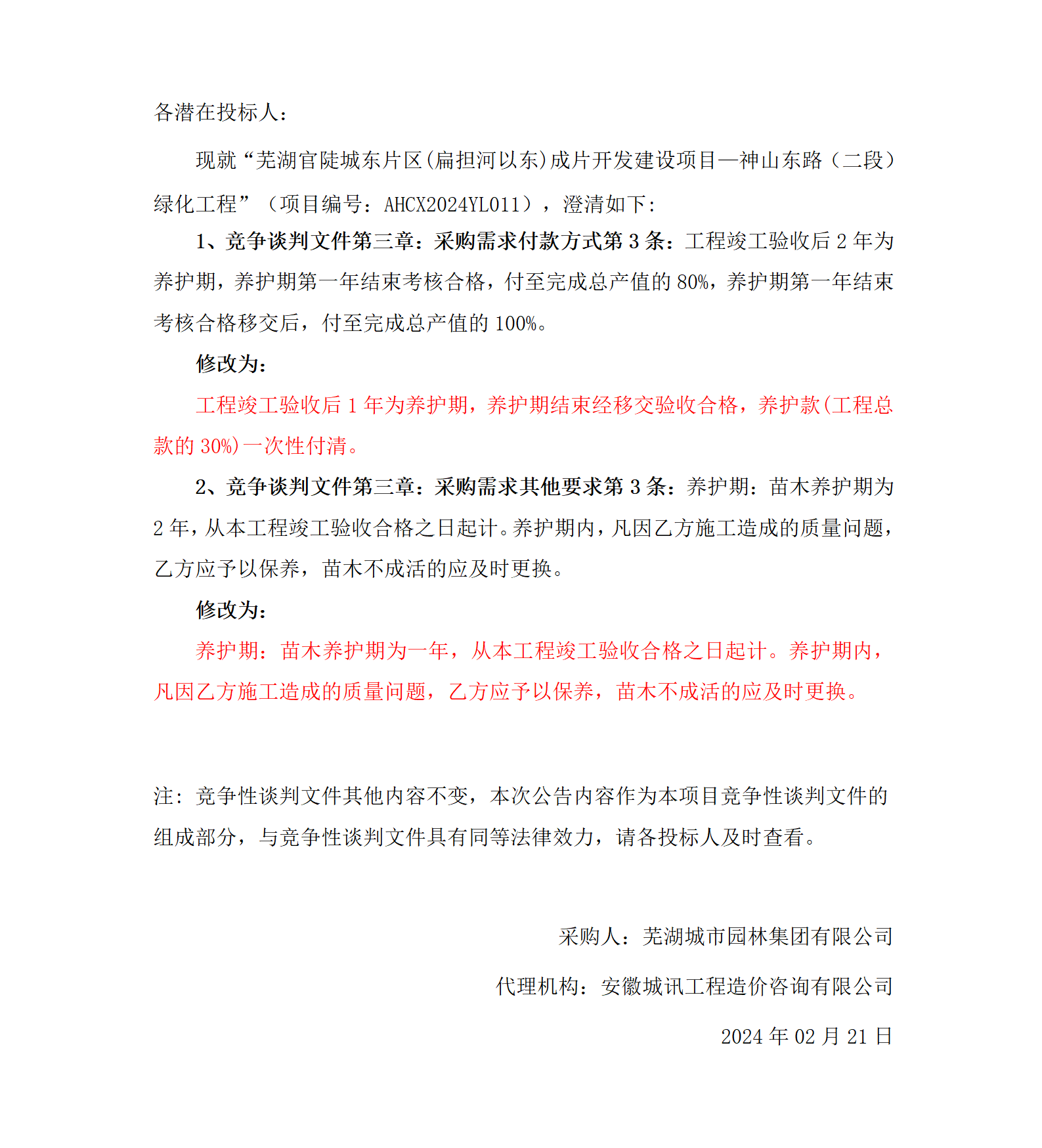 蕪湖官陡城東片區(qū)(扁擔(dān)河以東)成片開(kāi)發(fā)建設(shè)項(xiàng)目—神山東路(二段)綠化工程...