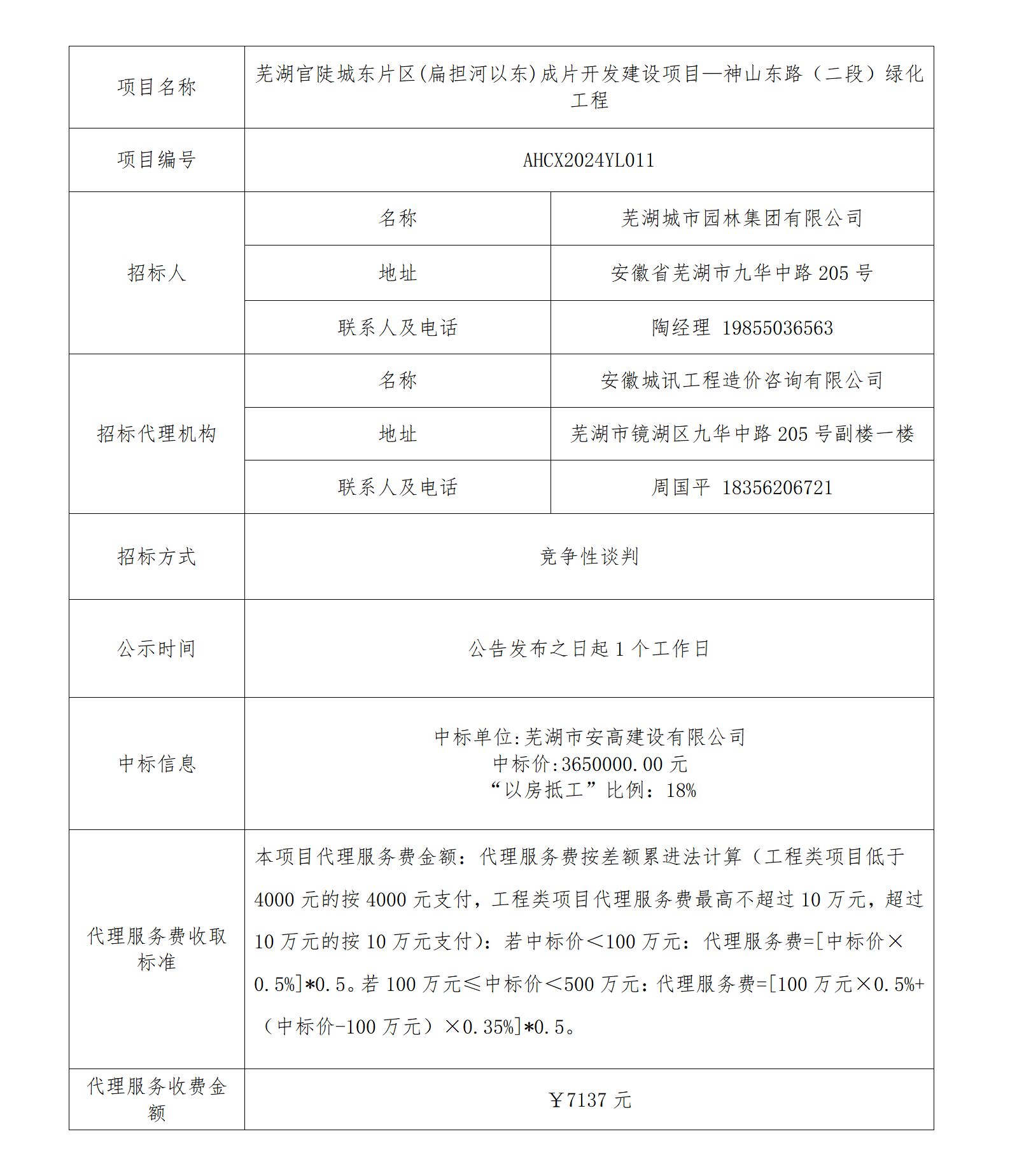 蕪湖官陡城東片區(qū)(扁擔(dān)河以東)成片開發(fā)建設(shè)項(xiàng)目—神山東路(二段)綠化工程...