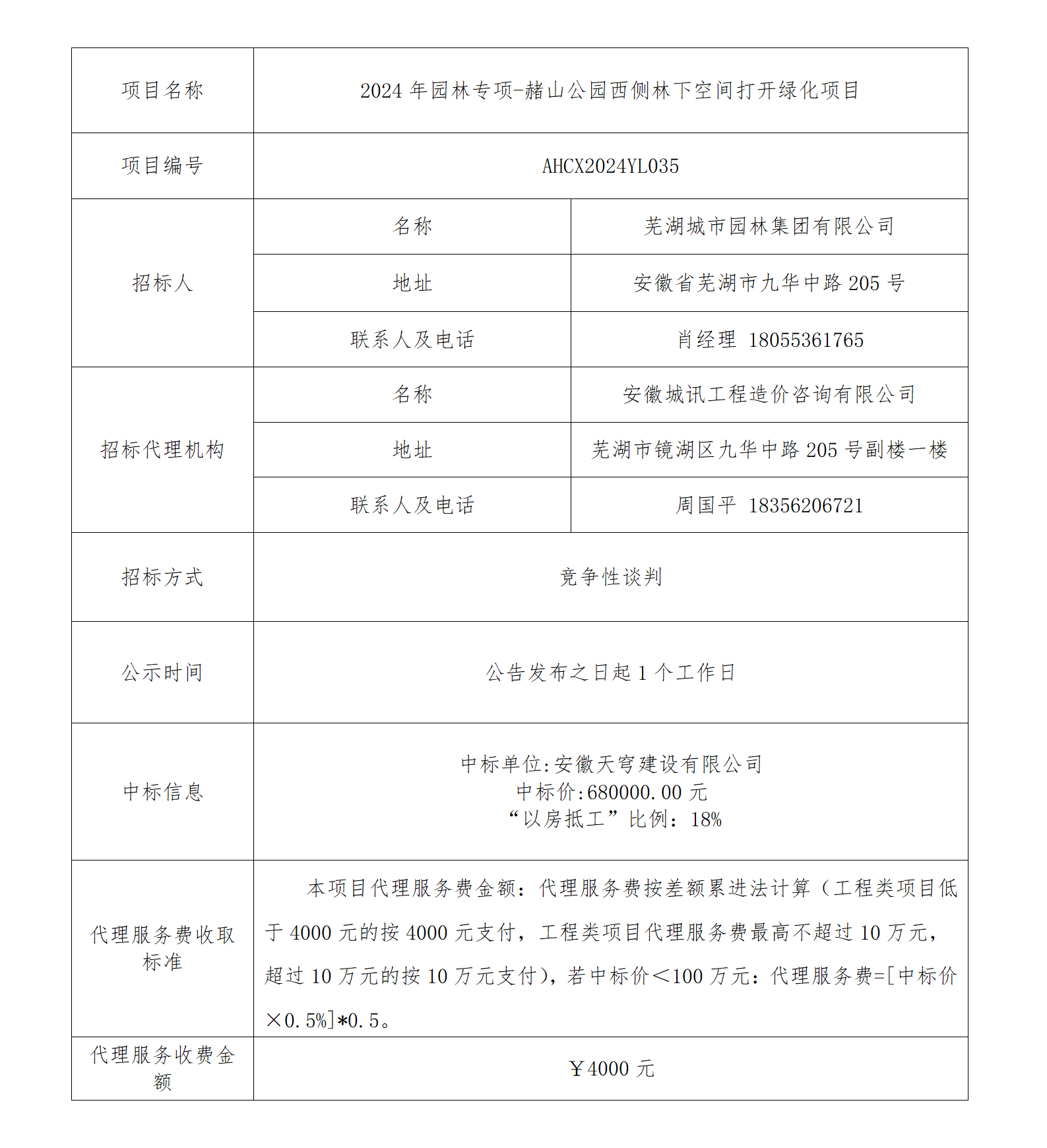 2024年園林專(zhuān)項(xiàng)-赭山公園西側(cè)林下空間打開(kāi)綠化項(xiàng)目成交結(jié)果公告