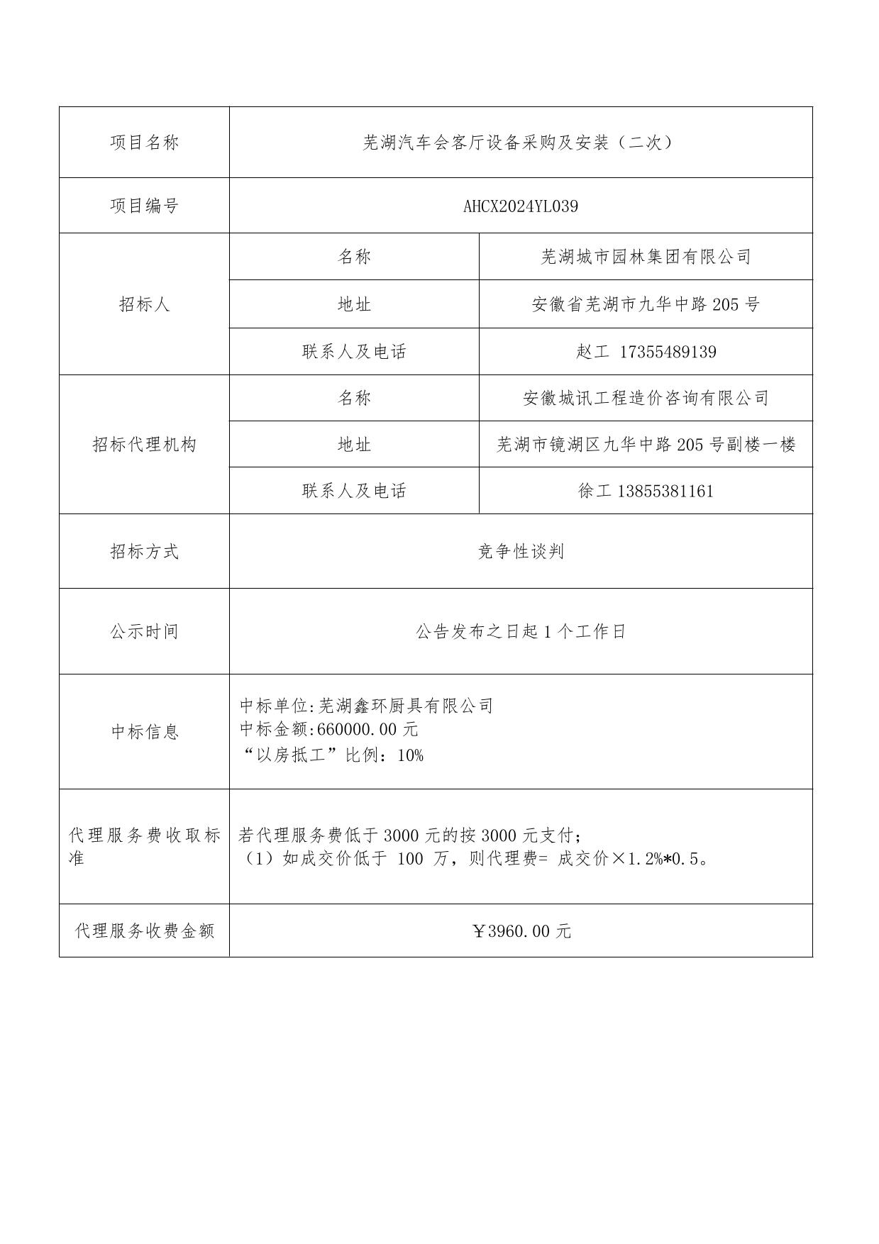 蕪湖汽車會(huì)客廳設(shè)備采購(gòu)及安裝(二次)成交結(jié)果公示