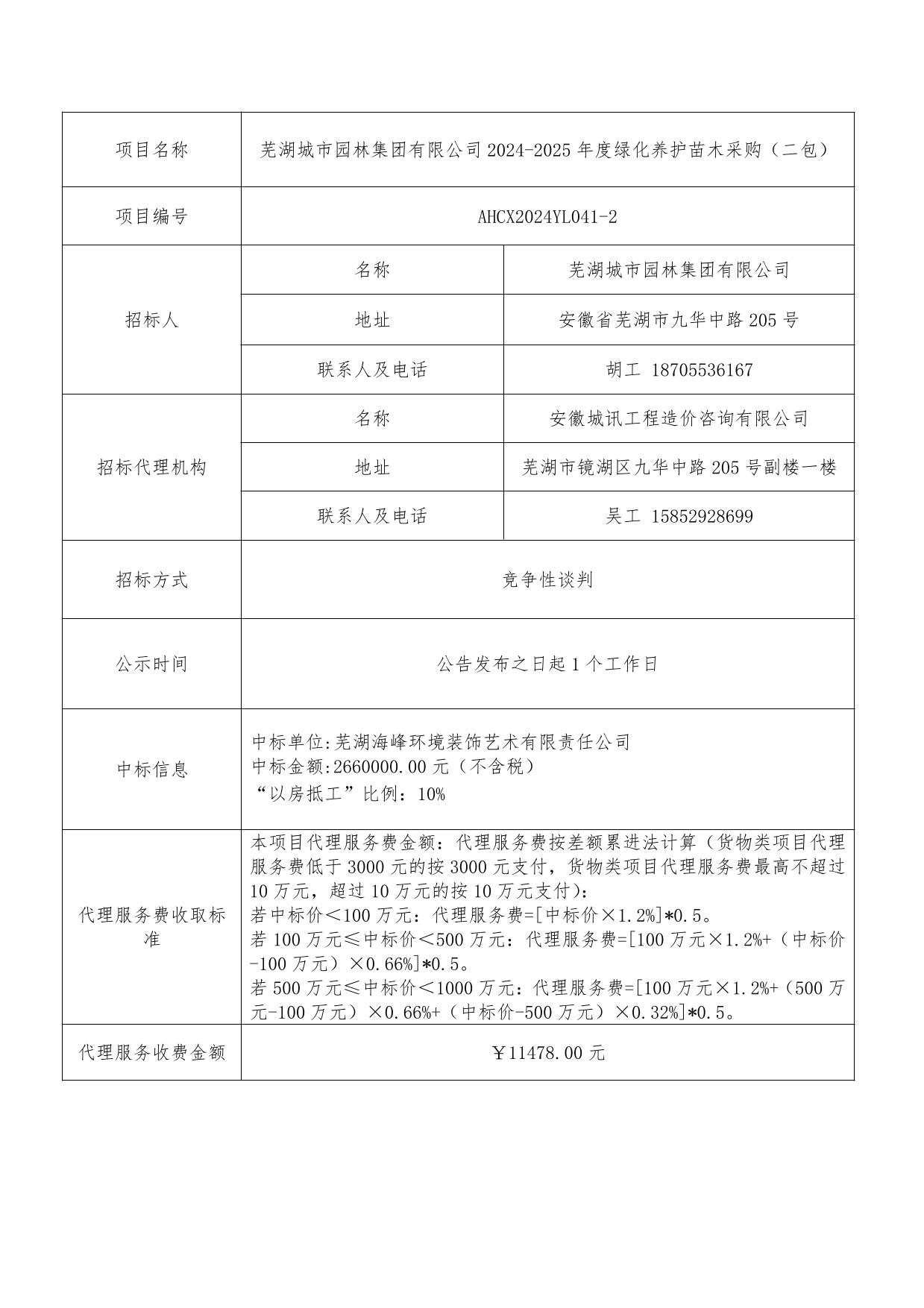 蕪湖城市園林集團有限公司2024-2025年度綠化養(yǎng)護苗木采購(二包)成